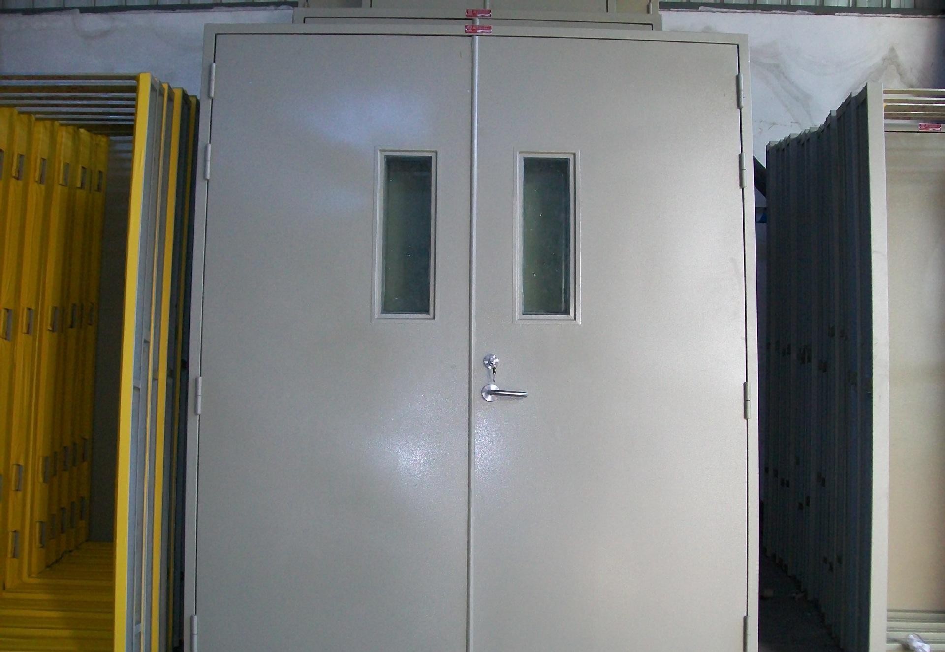 鋼質材料制作門框,門扇及骨架,門扇填充對人體無毒無害的防火珍珠巖,并配以防火配件所組成,防火能級別可分為甲級(1.5H)、乙級(1H)、丙級(0.5H).